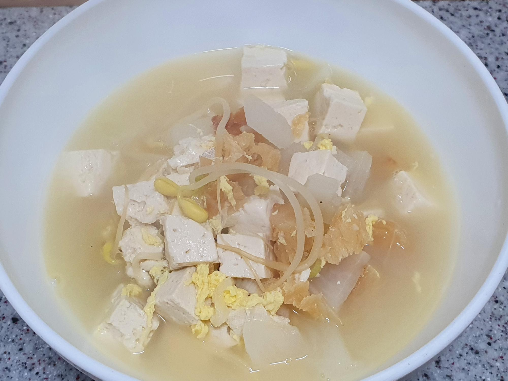 2) 부재료 : 무 1/3개, 콩나물 200g, 파 1개, 달걀2개, 두부 600g